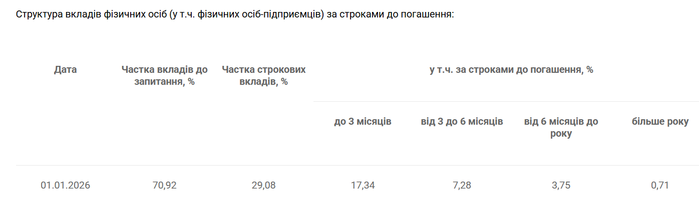 Із загальної суми вкладів фізичних осіб на 1 січня 2026 року: