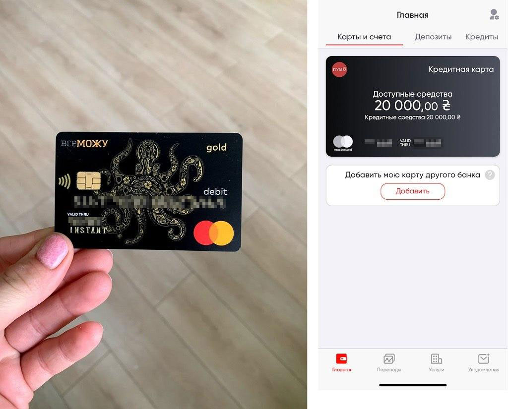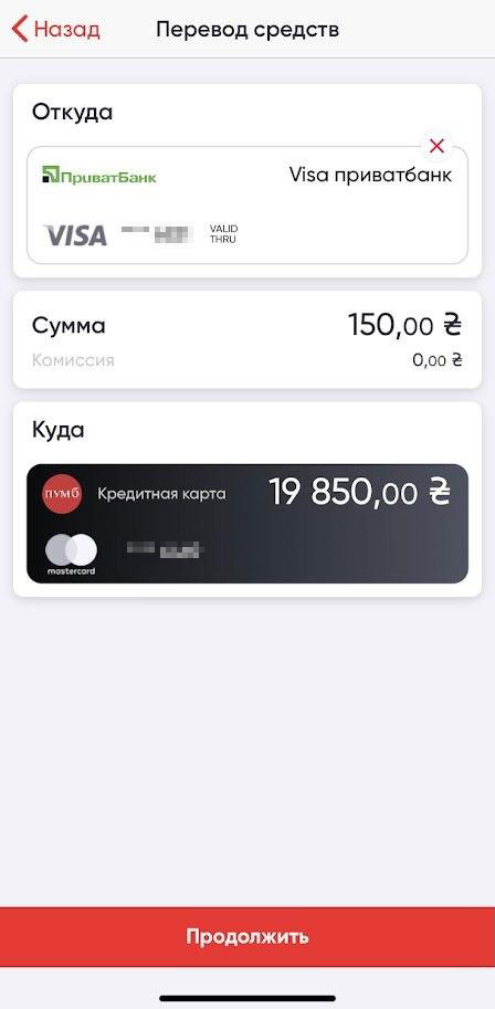 ПУМБ Online, и пополнила с нее кредитку на 150 грн. Комиссия по этой операции отсутствует.В банке сразу предлагают скачать мобильное приложение, чтобы управлять картой онлайн. Сразу после оформления банк отправил в СМС-сообщении временный пароль для входа в ПУМБ Online. Далее необходимо установить свой постоянный пароль, а также активировать FaceID или TouchID (если смартфон поддерживает эти технологии). Карта автоматически подтянулась в приложении, а значит можно начинать пользоваться ею.